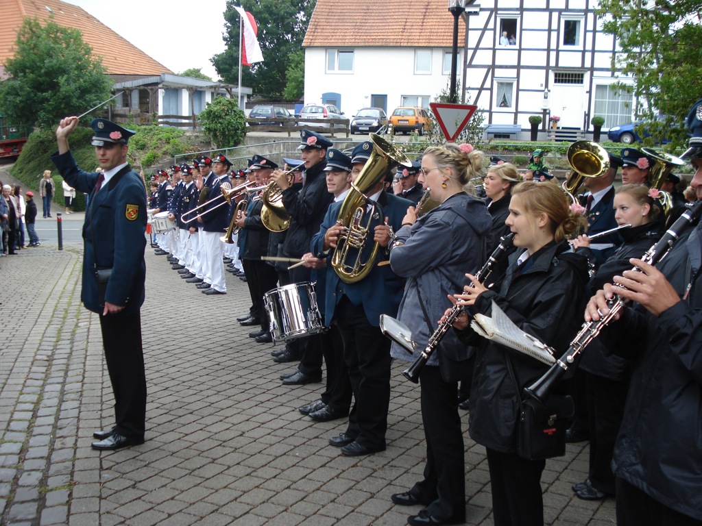 Sonntag. Kleiner Kater bei Chicken und ein grosser hatte wohl bei Volker genächtigt. Nicht weiter schlimm. Keine Ausfälle, alle waren wieder da. Perfekt. Ab zum Altenheim und den Bewohnern ein schönes Ständchen bringen. Wieder perfekt, schon unheimlich, dass alles gut läuft…. Ab ins HDG (Haus des Gastes – und nicht H. Dein Gebieter) Ständchen den Jubelpaaren. Wieder super – aber auch nicht weiter schwer. Essen. Essen??? Jetzt schon? Einige Musiker klagen über eine in Uniform noch nie da gewesene Sättigkeit! Tapfer essen alle fast alles auf (vor allem Lissel und Rudi haben sich das Trikot des Best-Essenden selbstredend verdient!).