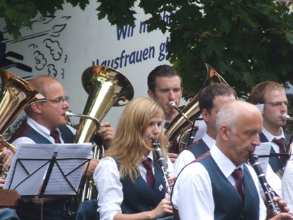 Nach dem Gottesdienst strömten alle Besucher auf die „Außen- Bühne“ vor dem „Kartoffelhaus“ um bei wärmendem Sonnenschein Highlights aus dem Frühlingskonzert und gute Blasmusik zu genießen.