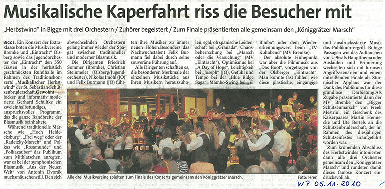 Herbstkonzert 2011 – Bericht Westfalenpost 05.11.2011